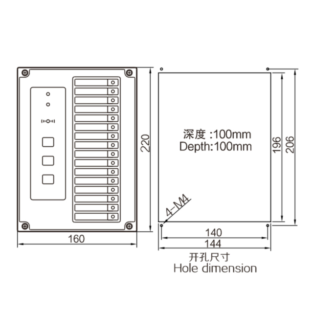 报警输出触点容量 : AC220V/1A 或 DC24V/2A