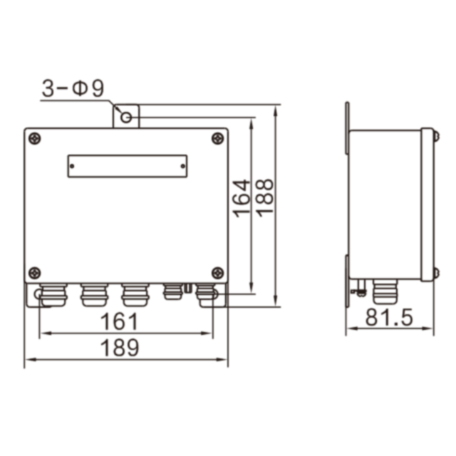 填料函进线孔径 : 3-Φ12mm, 2-Φ6mm