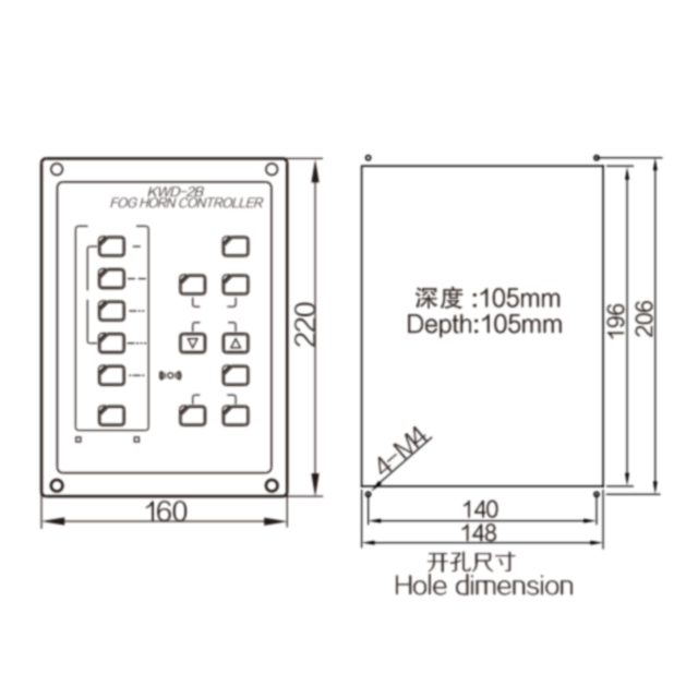 雾笛控制器,供船舶在航行时通过雾笛自动鸣放笛声,也可通过手动控制鸣放笛声,可转发通用紧急报警信号。