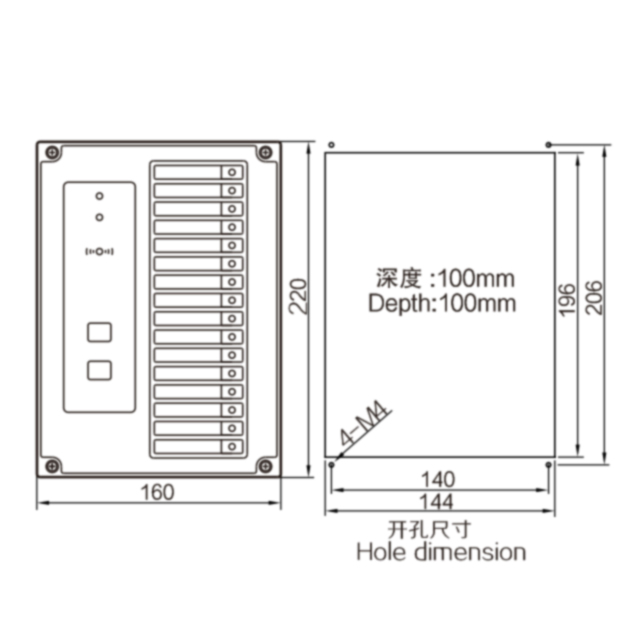 报警输出触点容量 : AC220V/1A 或 DC24V/2A