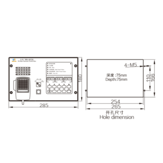 主摇控盒可显示通用紧急报警、火警、占线、电源故障、